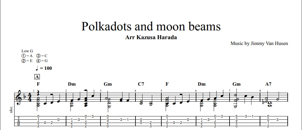 ジャズスタンダードからPolkadots and moon beams(Jimmy Van Heusen)のウクレレソロアレンジです。